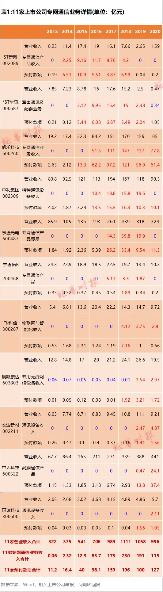 尤为引人注目的是,伴随专网通信业务收入增加,该等公司预付款项也同步大幅增加。