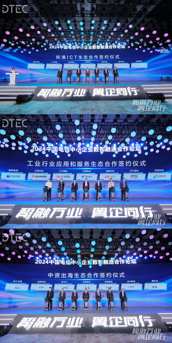 发布仪式后,中国电信与各领域生态伙伴分别签署了标准ICT生态合作协议、工业行业应用和服务生态合作协议、中资出海生态合作协议。