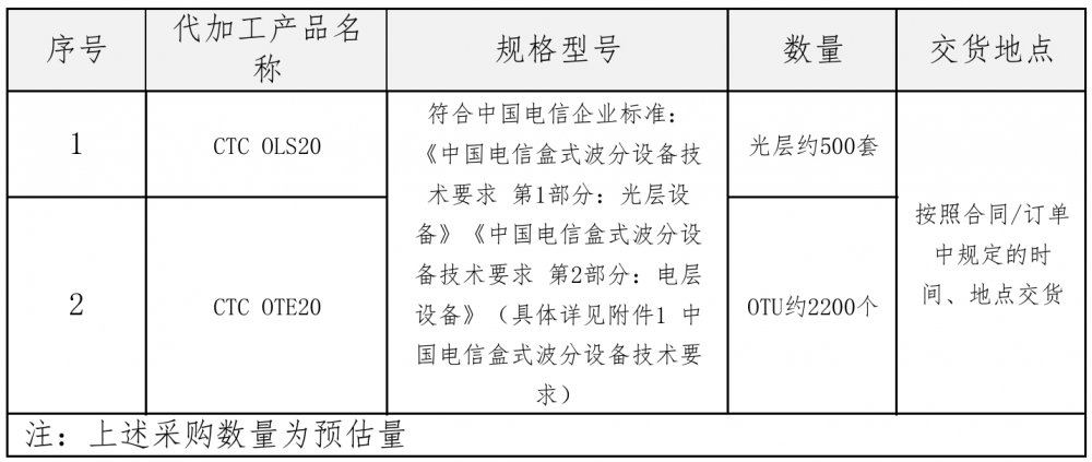 根据此前资格预审公告显示,本次采购的设备包括:CTC OLS20光层约500套,CTC OTE20 OYU约2200个。