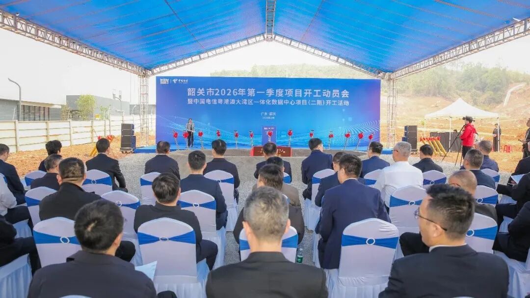 2月24日,2026年韶关市第一季度项目开工动员会暨中国电信粤港澳大湾区数据中心项目(二期)开工活动在浈江产业园举行。