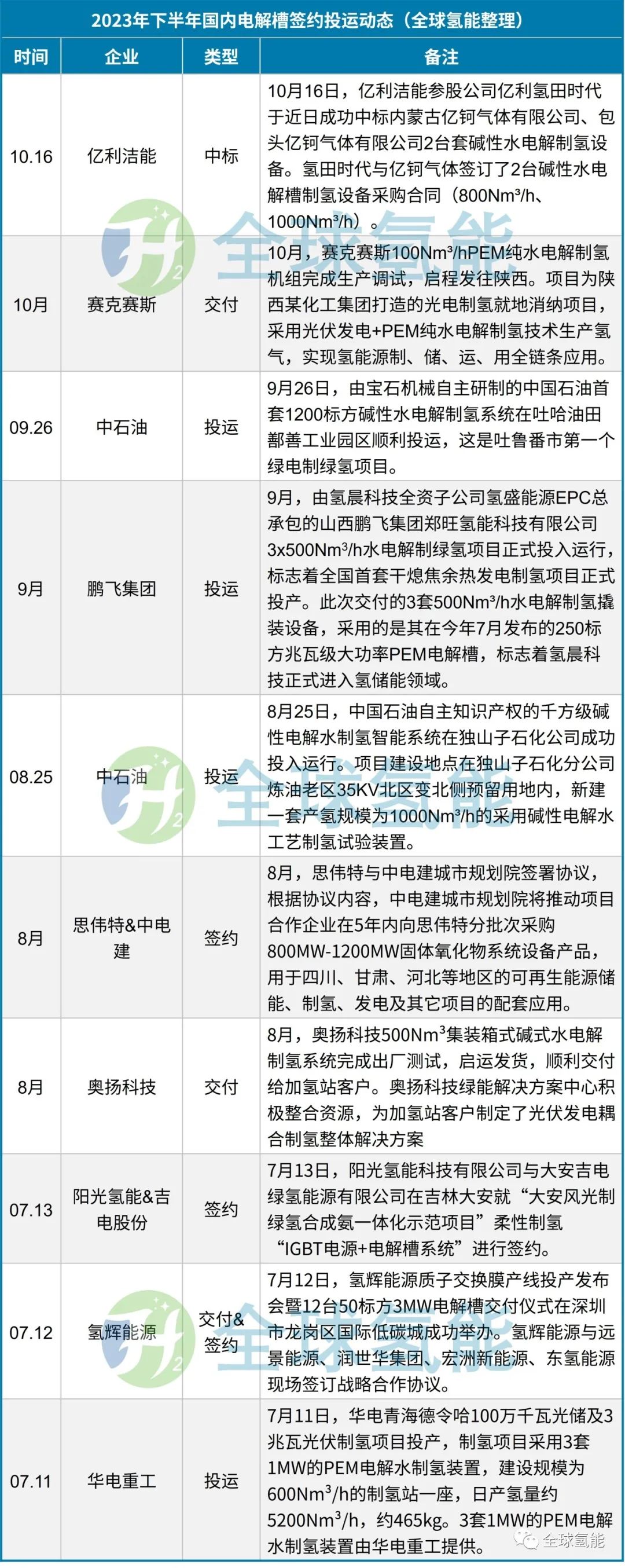 下半年来,碱性与PEM电解槽稳步推进实际应用,SOEC迈入示范运行阶段,出现定向签约合作事宜。