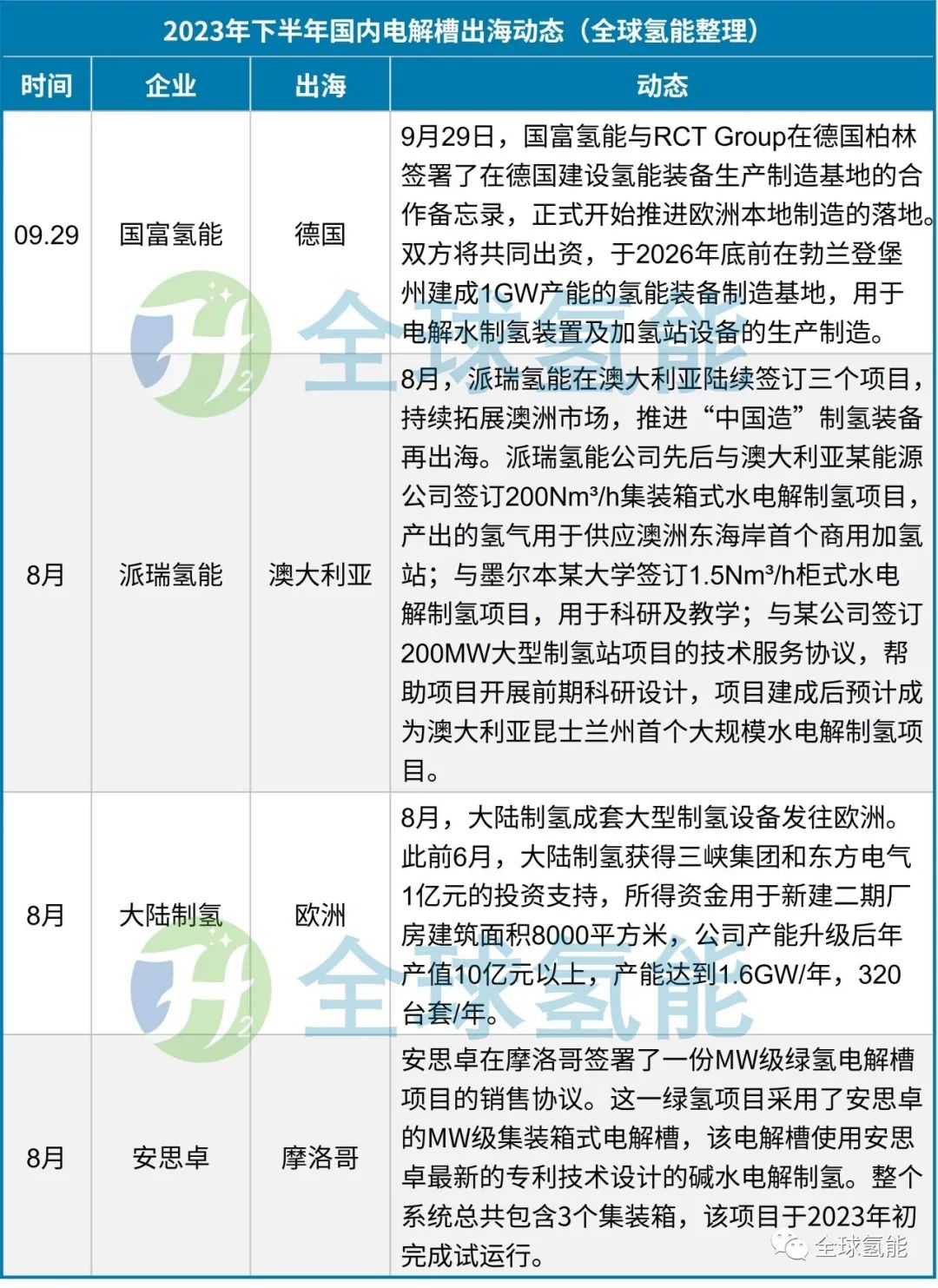 在电解槽设备出货量的快速增长下,国内厂商已经开始加速布局,已有多家企业布局或规划海外合作,助力电解槽的研发或生产。
