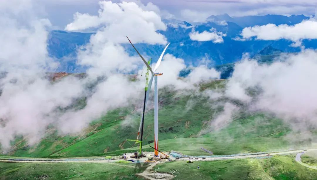 中车株洲所自主研发的超高海拔风电整机设备正在吊装(西藏八宿风电项目,最高海拔达5200米)