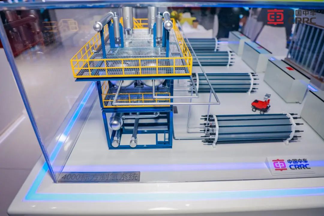 4000标方制氢系统具有安全、柔性、高效、智能的技术特点。其六大核心设备——制氢电源、EMS(能量管理系统)、DCS(工艺控制系统)、电解槽、分离装置和纯化装置,均由中车株洲所自主研发。目前,该电解水制氢系统已成功应用于大唐集团、中煤鄂尔多斯能源化工等国内多家企业。
