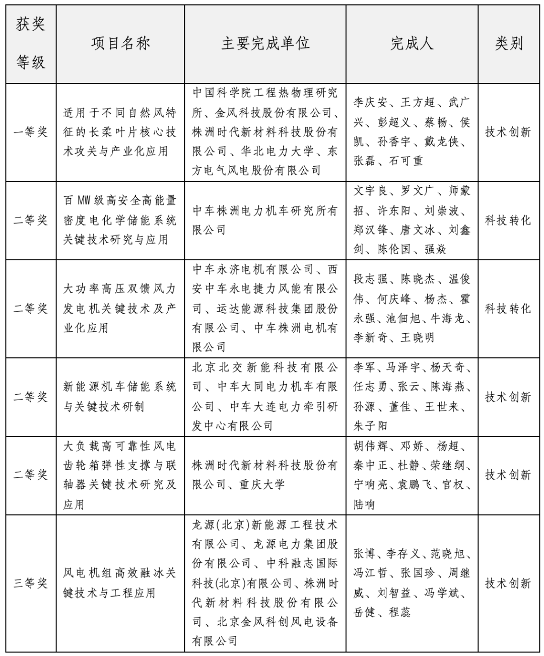 由中车子公司主导完成的3项二等奖成果,分别在风电机组核心部件、长柔叶片设计、大型电化学储能系统等关键技术领域取得重要突破,彰显了中车在高端装备研发与产业化应用方面的深厚积累。
