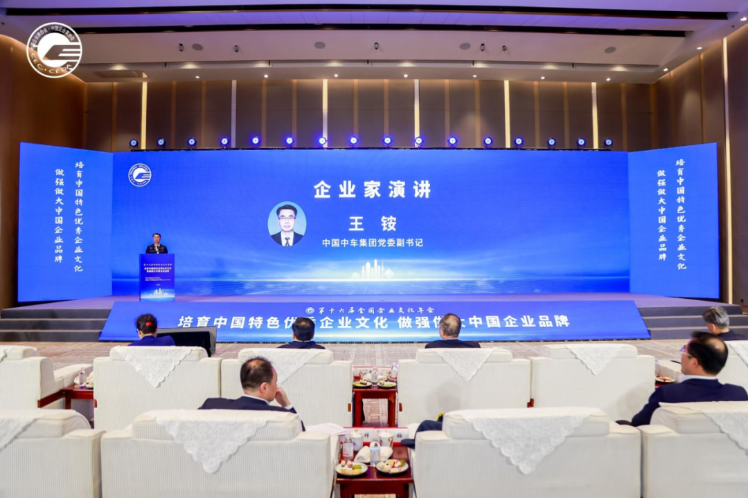 12月2日, 中国企业联合会 、 中国企业家协会 在山东青岛召开第十六届全国企业文化年会, 中国中车 11项成果荣获全国企业文化成果奖项,其中一等奖5项、二等奖6项,获奖数量位居全国企业前列。中国 中车集团 党委副书记王铵受邀参会并作文化品牌工作演讲。