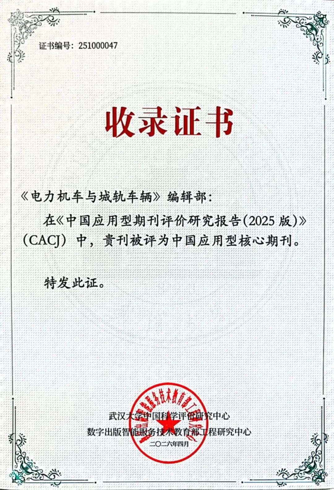 近日,第二届中国应用型期刊高质量发展研讨会暨《中国应用型期刊评价研究报告(2025版)》发布会在南宁召开。会上发布了《中国应用型期刊评价研究报告(2025版)》,由中国中车集团主管,中车株机公司等主办的《电力机车与城轨车辆》、中车四方所主办的《铁道车辆》、中车株洲所主办的《控制与信息技术》成功入选中国应用型核心期刊;中车株洲所主办的《机车电传动》成功入选中国应用型权威期刊。