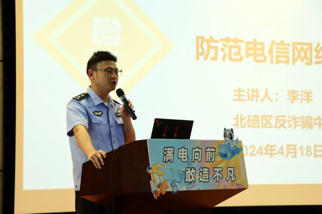 本次培训邀请到了北碚区蔡家岗街道派出所反诈中心的李洋老师做专题授课。内容涵盖网络诈骗的常见类型、识别与防范技巧以及遇到诈骗时的应对措施等多个方面,通过专家现场讲解与视频案例分享的方式让员工生动学习到如何应对防范诈骗。