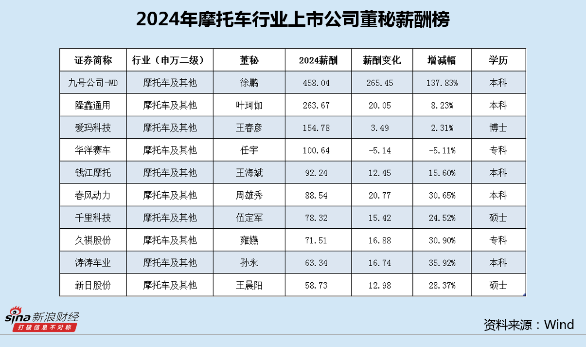 分行业来看,A股和新三板摩托车行业(申万二级)进入统计的上市公司共17家,董秘薪酬合计金额1858.89万元,平均年薪109.35万元。