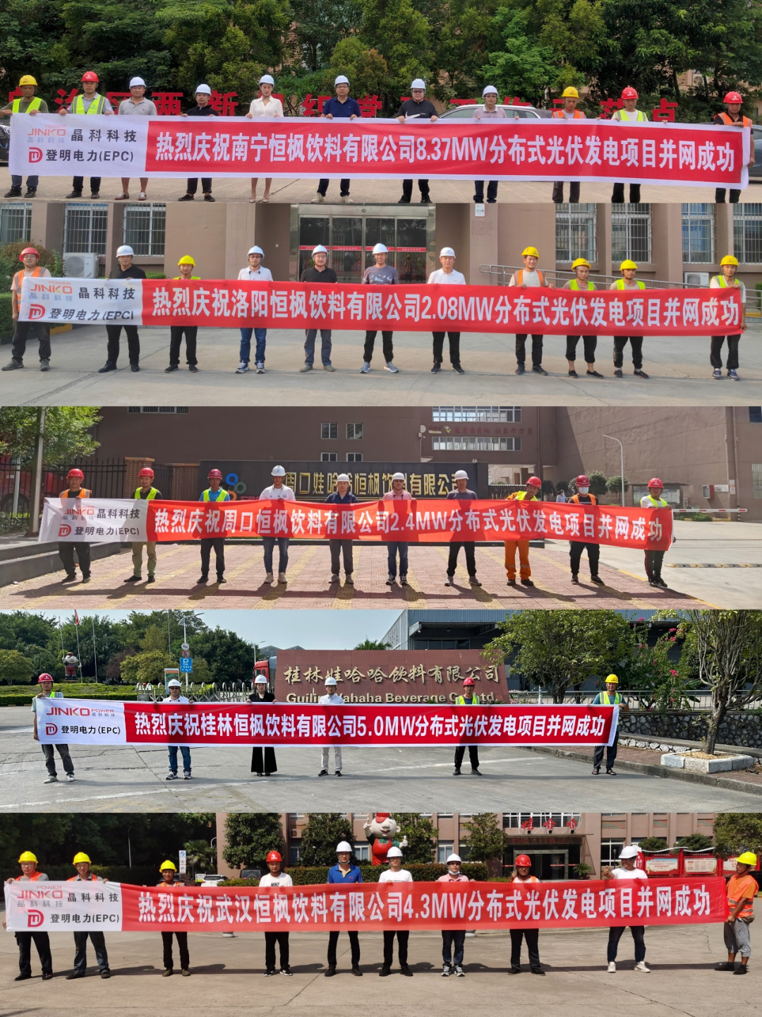 近日,由晶科电力科技股份有限公司(601778.SH,以下简称“晶科科技”)投资建设的首批“恒枫饮料生产基地”分布式项目顺利并网。本批“恒枫饮料生产基地”分布式光伏电站项目总装机容量22.15MW。其中,南宁8.37MW,洛阳2.08MW,周口2.4MW,桂林5MW,武汉4.3MW。