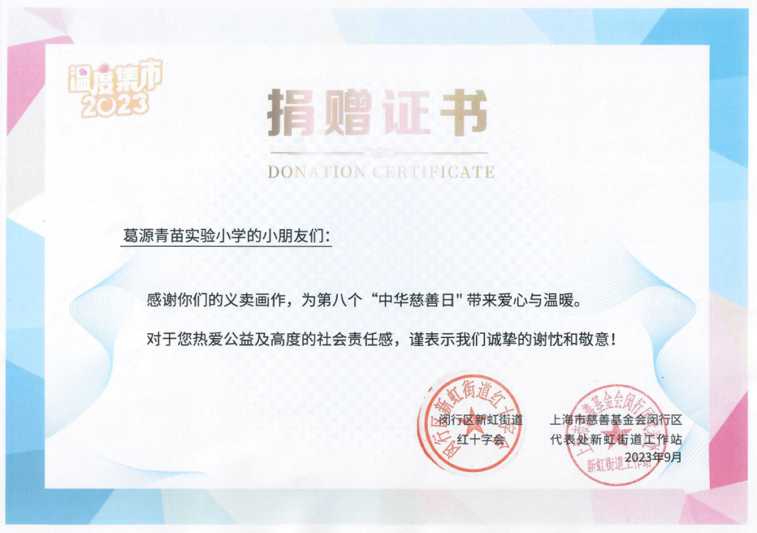 爱心义卖在9月1日新虹街道组织的“温度集市”活动中开展,公司提供的义卖物品围绕新能源及晶科特色开展。自活动倡议发布以来,公司招募了志愿者团队积极推进,内部员工也积极响应,现场短短2小时,13幅画作和11份定制发电模型均已完成认购和义卖。