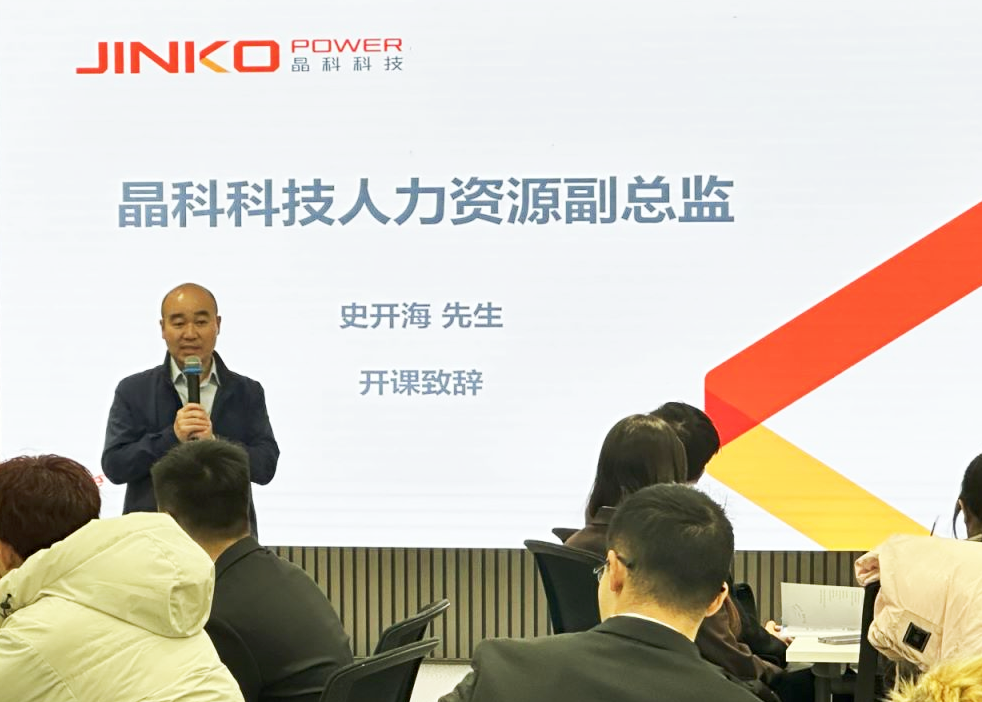 人力资源副总监史开海发表开课致辞,讲述了晶才计划的背景及公司对于人才培养的重视,他表示晶才计划为管培生们提供培养机制和资源,强调个人持续学习不仅提高自身竞争力,也提升企业的组织绩效和持续发展,希望各位学员秉承晶科企业文化,不断提升自身的综合素质和专业能力,助力晶科持续发展!