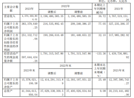 晶科科技近期发布2023年年报。报告期内,公司实现营业收入43.7亿元,同比增长36.72%;实现归母净利润3.83亿元,同比增长77.05%;扣非后净利润2.51亿元,同比增长32.1%。