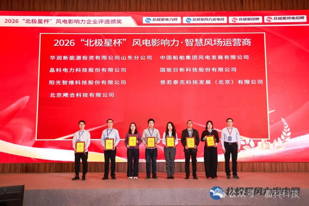 3月10日,第五届风电运维技改研讨会在京召开。会上,晶科科技(601778.SH)凭借其风场运营管理领域的数智化创新实践,在2026“北极星杯”风电影响力企业评选中荣获“智慧风场运营商”称号。