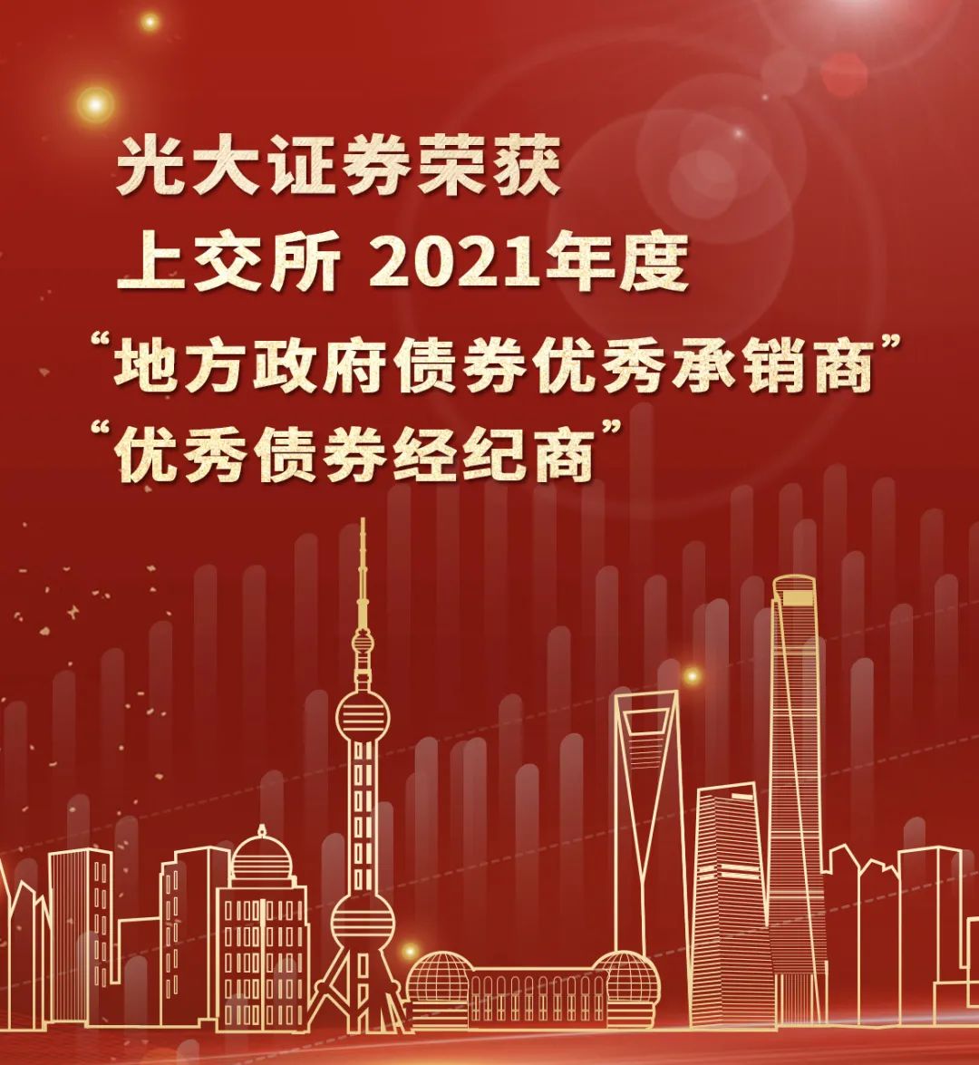 近日,上海证券交易所根据2021年债券发行、承销、交易、创新、投资、存续期内履职情况、执业质量等指标对参与上交所债券市场的各公司开展了评比。光大证券获2021年度“地方政府债券优秀承销商”称号,连续三年获此殊荣,同时首次荣获“优秀债券经纪商”称号。