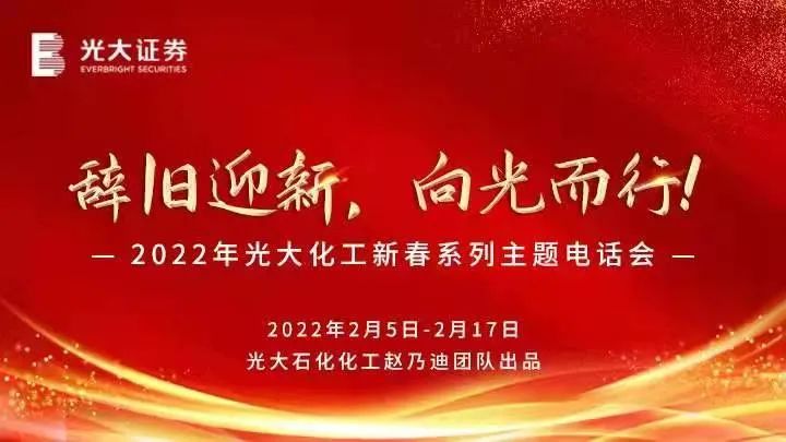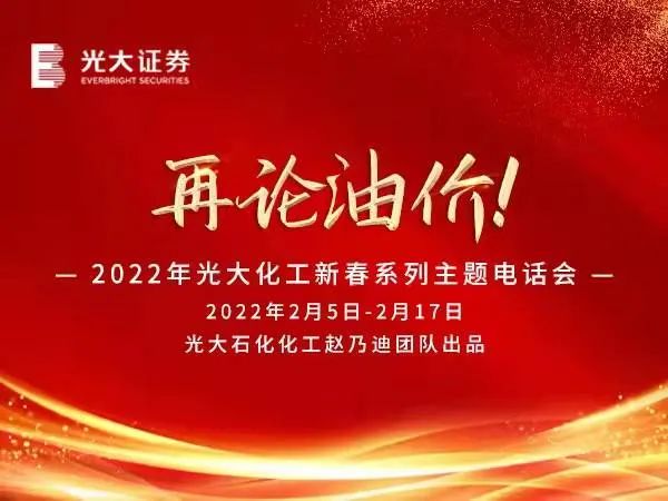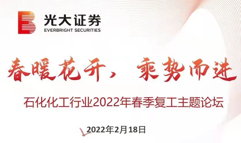 2月5日至18日,光大证券研究所举办了“辞旧迎新,向光而行”石化化工新春系列主题电话会和“春暖花开,乘势而进”石化化工行业2022年春季复工主题论坛。活动期间,获得了来自光大期货研究所的大力支持,双方发挥各自领域优势,协同效果得到了充分体现。