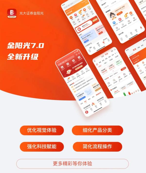 除以上功能模块的完善外,金阳光APP7.0在安全性上也更进一步,而且还有7*24小时线上客服随时应答,以及更专业的人工客服为投资者答疑解惑,使用起来更省心省力!光大证券一直以来以交易快、佣金低、平台稳著称,此次金阳光app的升级更是对投资者的一大助力,助力投资者更好的实现财富自由。