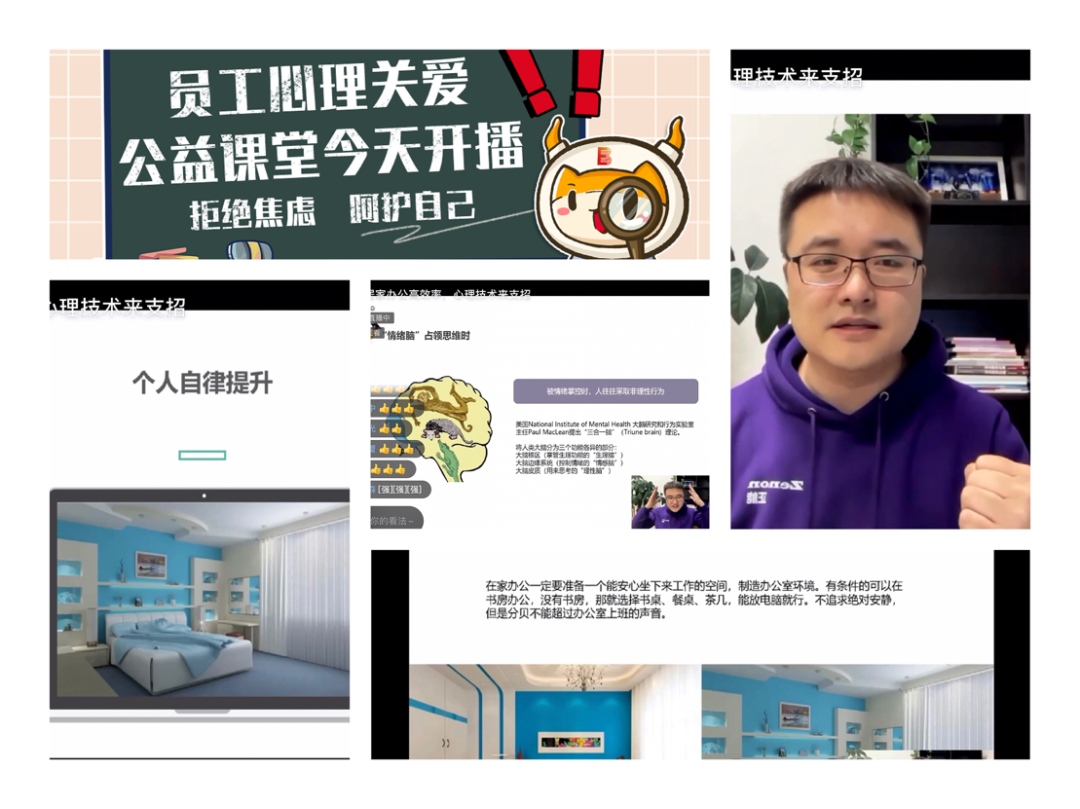 光大证券工会一直致力于加强对员工身心健康的关心关爱力度,努力承担起“加油站”和“减压阀”的角色。在今年3月的妇女节,公司工会专门邀请复旦大学健康与医学心理研究所副所长李晓茹副教授为广大女性员工讲授心理健康知识,获得大家的一致好评。本周开启的“疫情下的心理健康”系列线上讲座活动,是工会加强疫情期间员工心理疏导的又一举措。首期讲座主题为《居家办公高效率心理技术来支招》,围绕“居家办公面临的问题和挑战”“如何解决拖延症”“居家办公如何提高效率”等员工关心的问题进行解答和探讨,帮助员工提高心理健康的重视程度,增强员工居家办公期间平衡好工作和生活的能力。线上累计千余人次参加此次讲座。后续,还有《疫情下的心理调适和个人成长》《疫情下的和谐沟通》《疫情下的自我呵护》等多场精彩的讲座已准备就绪,将进一步帮助员工们疏导内心情绪、缓解心理压力、提高战“疫”耐心、提升工作效率。