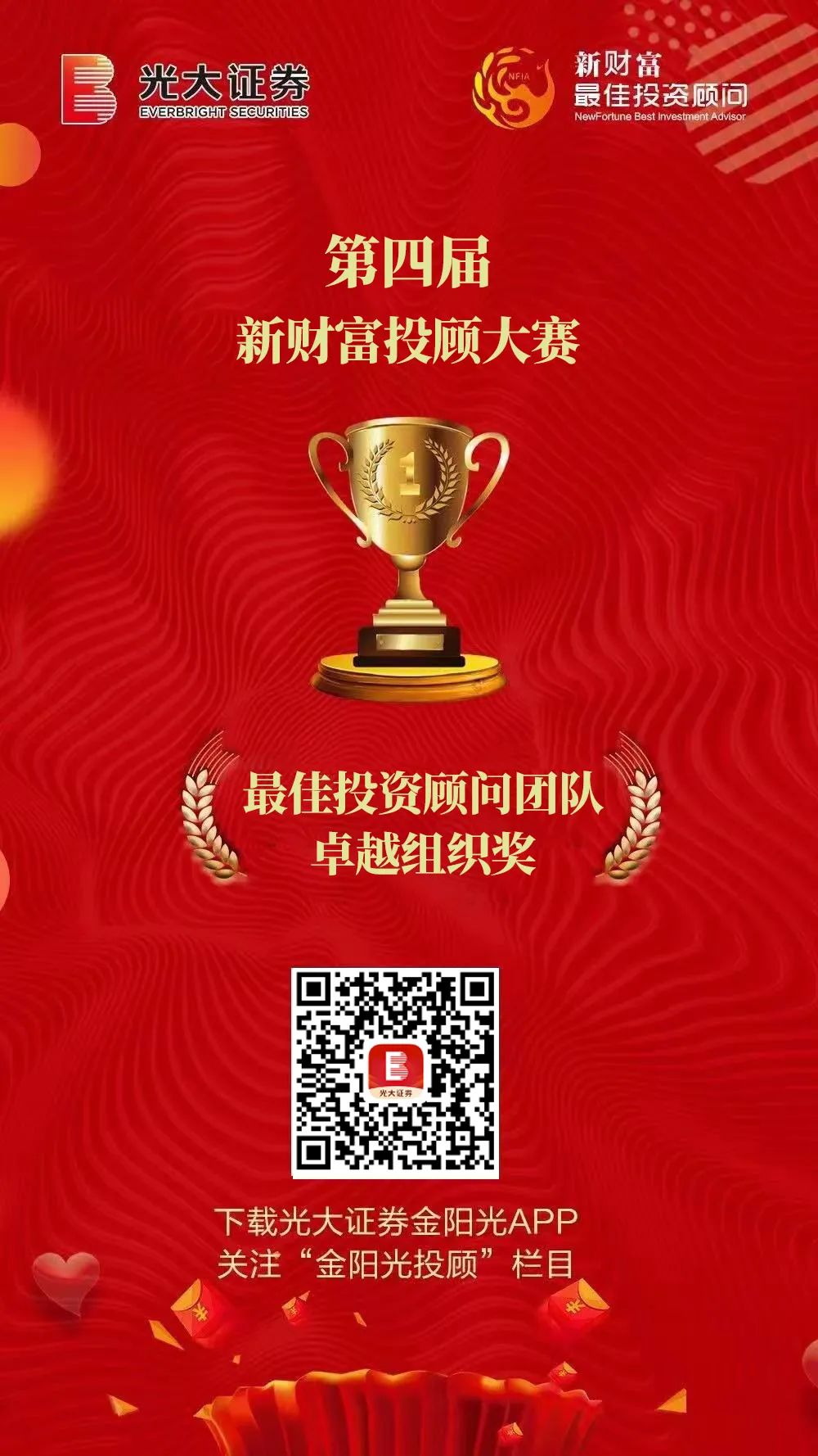 4月18日,经历7个月激烈角逐,光大证券在第四届“新财富最佳投顾大赛”上连续三年荣获“最佳投资顾问团队”,连续两年获得大赛“卓越组织奖”。