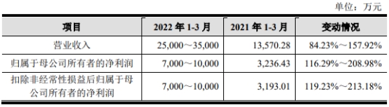 纳芯微预计2022年第一季度营业收入为2.50亿元-3.50亿元,同比增长84.23%-157.92%;归属于母公司所有者的净利润为7000万元-1亿元,同比增长116.29%-208.98%;扣除非经常性损益后归属于母公司所有者的净利润为7000万元-1亿元,同比增长119.23%-213.18%。