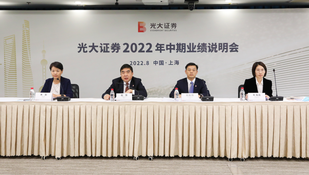 8月26日,光大证券在上证路演中心、路演中等平台直播召开2022年度中期业绩说明会。光大证券董事长赵陵,总裁刘秋明,副总裁、董事会秘书朱勤出席,与来自瑞银、国泰君安、兴业证券等境内外知名机构分析师、投资者及媒体记者围绕公司2022年上半年业绩情况及公司下阶段战略发展布局、业务协同、财富管理转型、投行业务以及资管业务等市场关注热点问题开展深入沟通交流。