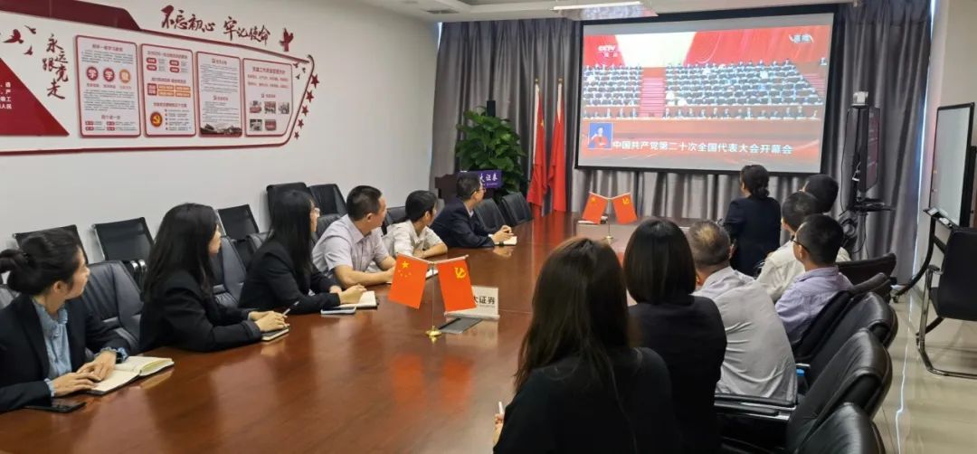 2022年10月16日,中国共产党第二十次全国代表大会在北京人民大会堂隆重开幕。习近平总书记代表十九届中央委员会向党的二十大作报告。光大证券各级党组织和广大党员干部群众通过电视、网络、广播等多种途径收听收看现场直播。报告在公司各级党组织和广大党员干部员工中引起热烈反响,大家备感振奋、深受鼓舞,并表示将学习好、宣传好、贯彻好党的二十大精神作为当前和今后一个时期的重大政治任务,全面把握和深刻领会习近平总书记重要讲话的精神实质、精髓要义,积极践行金融工作的政治性、人民性,坚定不移走中国特色金融发展之路。