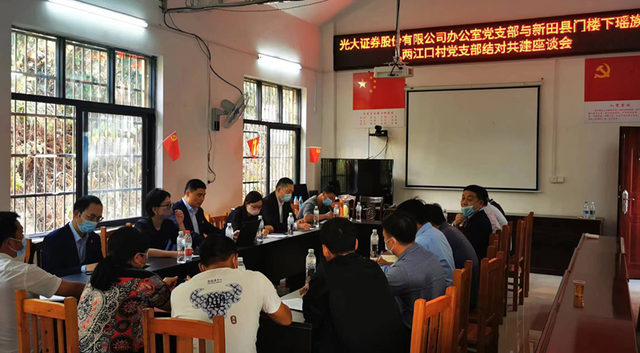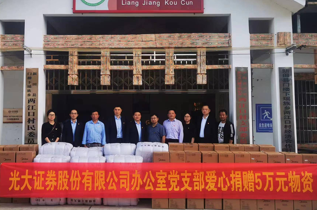 近日,光大证券股份有限公司办公室党支部联合新田县门楼下瑶族乡两江口村党支部开展“学习贯彻党的二十大精神”主题党日活动,并就开展结对共建进行座谈交流,光大证券办公室党支部向两江口等村捐赠价值5万元的爱心物资。