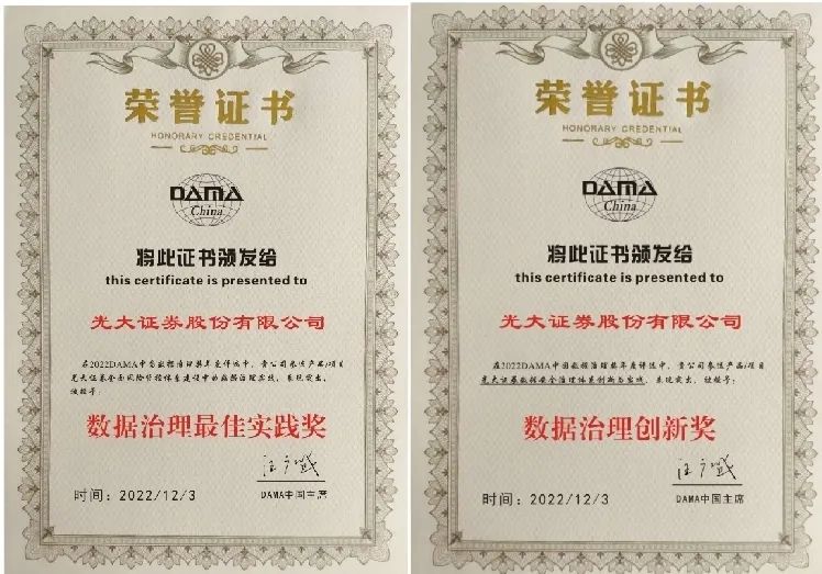 近期,2022国际数据管理协会(DAMA)中国数据管理峰会组委会公布DAMA中国2022年度获奖名单。经过前期多轮专家的严格评审和激烈角逐,光大证券报送案例从360余项申报材料中脱颖而出,同时斩获“DAMA2022数据治理最佳实践奖”和“DAMA2022数据治理创新奖”两项重量级奖项。