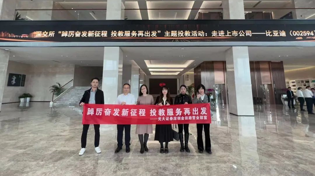 为推进上市公司提升投资者关系管理水平,促进上市公司与投资者有效沟通,光大证券在2月带领投资者走进比亚迪、星云股份、星网锐捷、菲菱科思等上市公司,为中小投资者与上市公司近距离接触搭建起桥梁,让投资者实地考察上市公司运营情况,感受上市公司企业文化。2月28日,光大证券参与上海证券交易所与海南证监局联合主办的“拥抱注册制共享高质量-投资者面对面?上交所投服周海南海口行”投资者教育专项活动,组织投资者走进海口国贸大道营业部进行座谈,帮助投资者树立理性投资、价值投资理念,切实保护投资者合法权益。