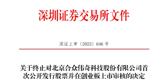 2023年8月18日,合众伟奇向深交所提交了《北京合众伟奇科技股份有限公司关于撤回首次公开发行股票并在创业板上市申请文件的申请》,保荐人向深交所提交了《光大证券股份有限公司关于撤回北京合众伟奇科技股份有限公司首次公开发行股票并在创业板上市申请文件的申请》。根据《深圳证券交易所股票发行上市审核规则》第六十二条的有关规定,深交所决定终止对合众伟奇首次公开发行股票并在创业板上市的审核。