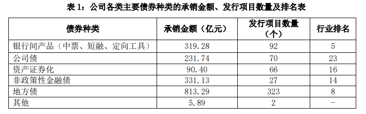 据光大证券2023年中报披露,债券承销金额1,791.74亿元,市场份额2.93%,行业排名第9位。其中,银行间产品承销92单,承销金额319.28亿元,行业排名第5位;地方债承销2单,承销金额813.29亿元,行业排名第8位。