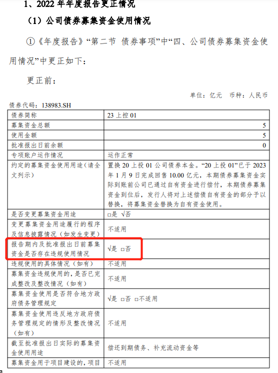 更正原因显示,“编制2022年度公司债券年度报告过程中适用情况勾选错误,实际未发现违规使用情况”。