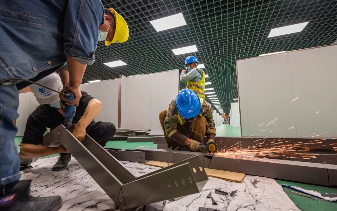 此次,宁波奥体中心“方舱医院”改造任务,涉及改造建筑面积超三万平方米,包括三层床位建设及整体外围围挡搭建,由宁波建工和新中源两家单位同时承建。其中,宁波建工工程集团承建16000平方,建设床位1478个;拉设配套电路60000余米、安装插座5912个、安装视频监控74个,外围围挡搭建1500余米。
