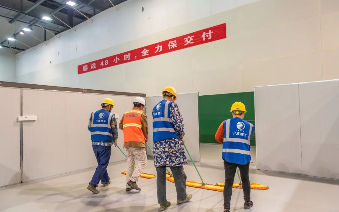 在时间紧、任务重的条件下,宁波建工工程集团主要领导靠前指挥,各专业公司精诚合作,650余名施工人员发扬团结协作、连续作战精神,用坚定信念和强有力的行动争分夺秒参与方舱医院抢建改造,为宁波防疫工作贡献建工力量和担当!