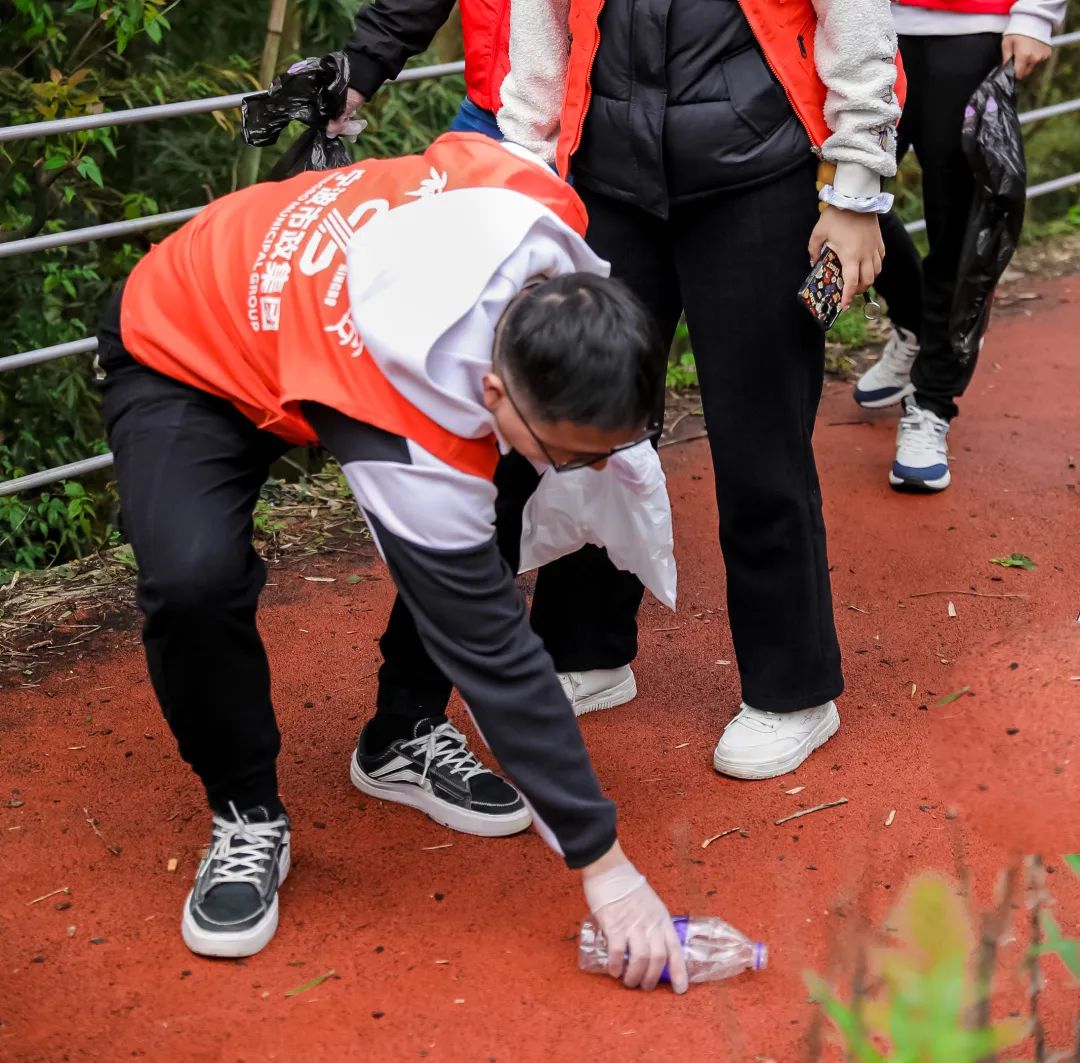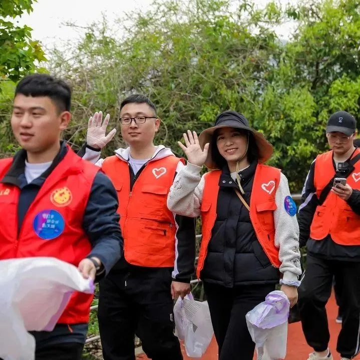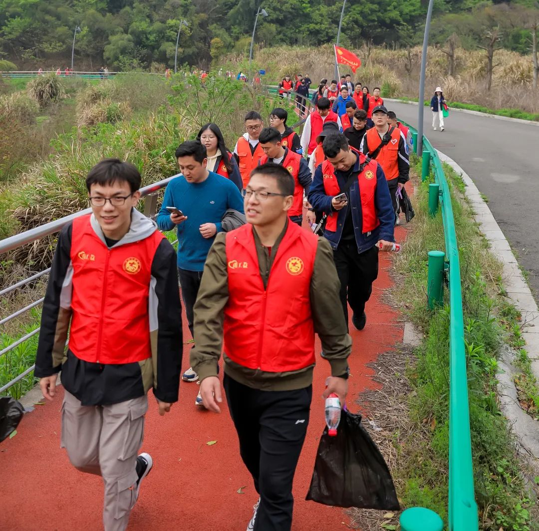 百名职工身穿志愿红马甲,手拎垃圾袋,迈着矫健的步伐,健步出发!