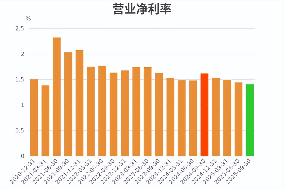 宁波建工(601789)2025年第三季度报告显示,本报告期营业净利率1.4%,同比下降。 |