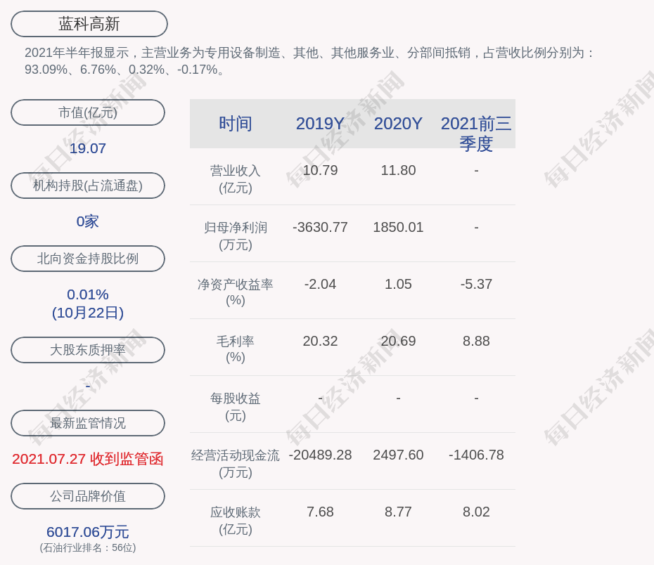 2021年半年报显示,蓝科高新的主营业务为专用设备制造、其他、其他服务业、分部间抵销,占营收比例分别为:93.09%、6.76%、0.32%、-0.17%。