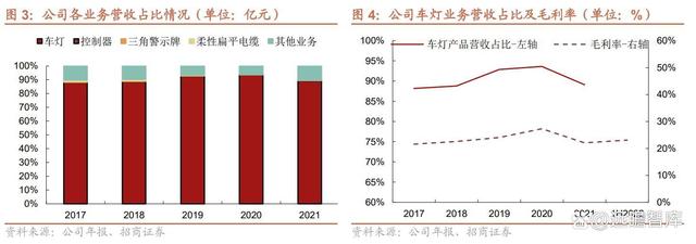 公司主营业务收入主要来源于汽车车灯的生产和销售,且公司车灯产品的毛利率较高,将提升公司整体盈利能力。