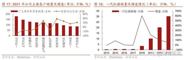 2021年公司对一汽大众和上汽大众等公司的销量下滑,但在一汽红旗等自主品牌客户的开发上有所进展。根据一汽红旗的销量快报显示,2021年一汽红旗全年销量突破了 30 万台,同比增长超过 50%,其中 12 月销量达到了3.91万台,创下了单月销量的新纪录。