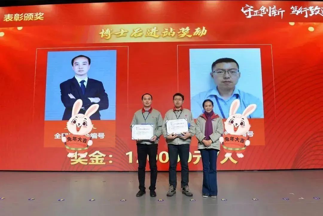 周晓萍董事长、李树军副总分别为优秀科研团队、博士后工作站进站人员以及入选2022年“科创江苏”企业创新达人的同事颁发证书及奖金。