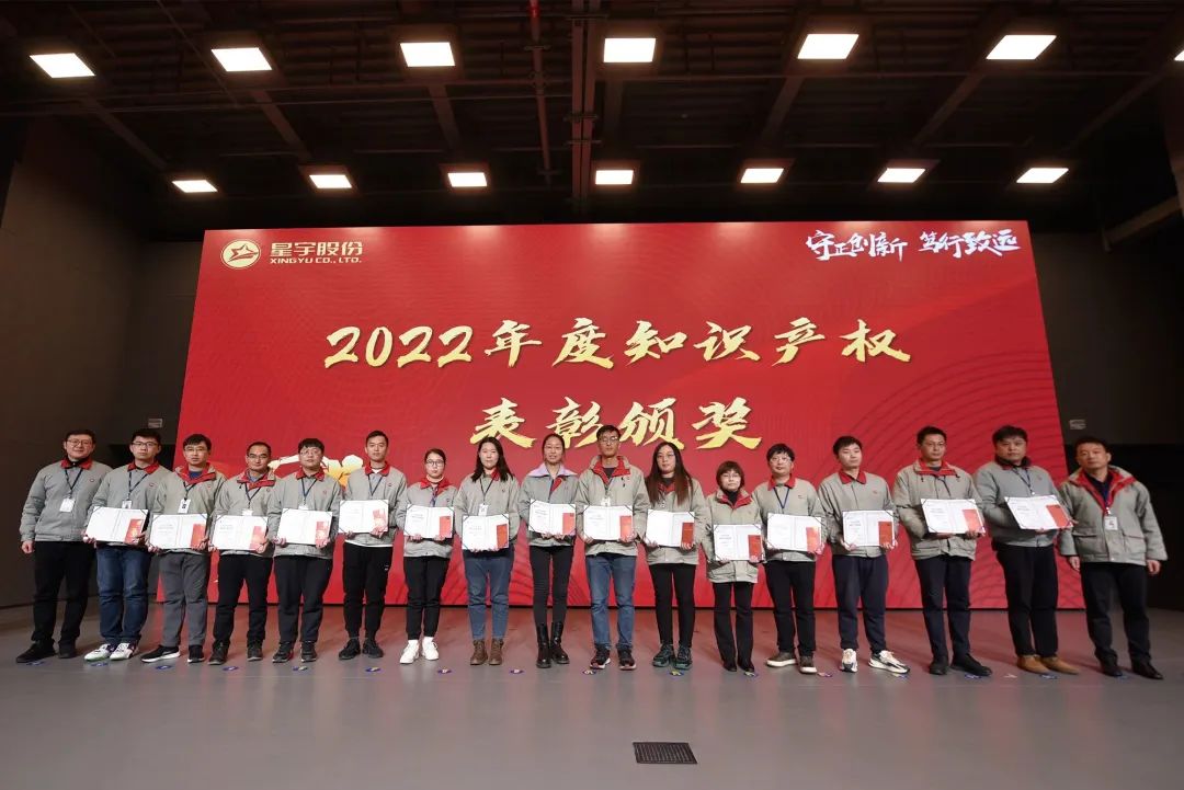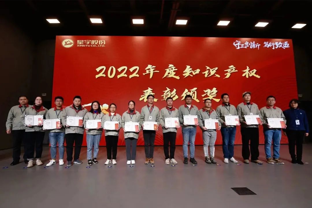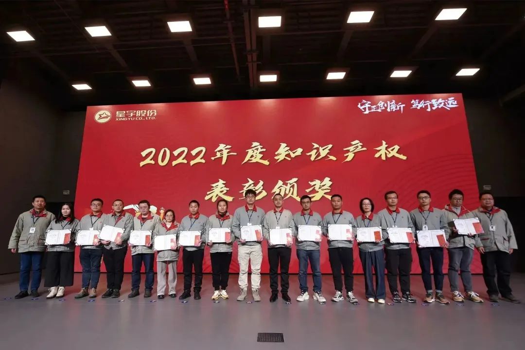 1月6日,星宇股份2022年度知识产权表彰大会在星宇中心报告厅隆重举行。2022年度公司知识产权工作取得了喜人的成绩,专利申请510件,授权370件。此次表彰大会发放奖金突破70万元,周晓萍董事长携全体中高层领导出席加持,知识产权部门负责人唐燕部长主持大会。