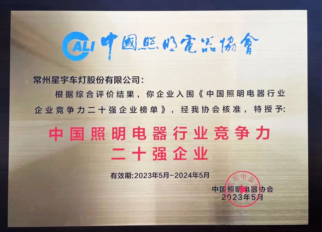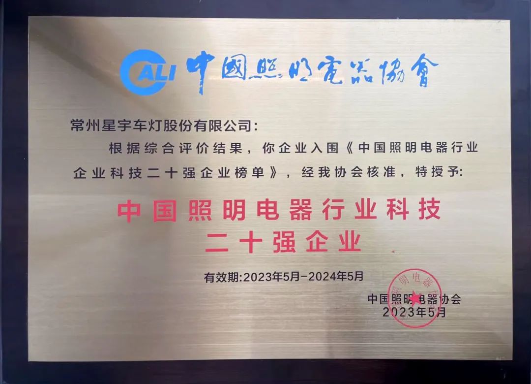 5月10日-12日,“2022-2023中国(深圳)照明产业链科技创新展”(CLITI展)隆重举办。展会上表彰了“2022年度中国照明电器行业企业评价”中的优秀企业,星宇股份被授予2022年度中国照明电器行业“竞争力20强企业”及“科技20强企业”两项荣誉称号。