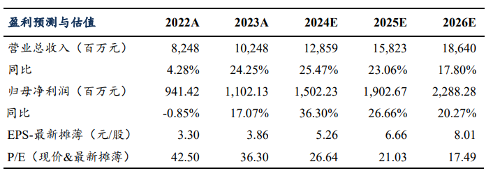 公司发布2023年年度报告,2023年公司实现营业收入102.48亿元,同比增长24.25%;实现归母净利润11.02亿元,同比增长17.07%。其中,2023Q4单季度公司实现营业收入30.12亿元,同比增长31.87%,环比增长7.11%;实现归母净利润3.21亿元,同比增长70.97%,环比增长1.90%。公司2023Q4业绩整体符合我们的预期。