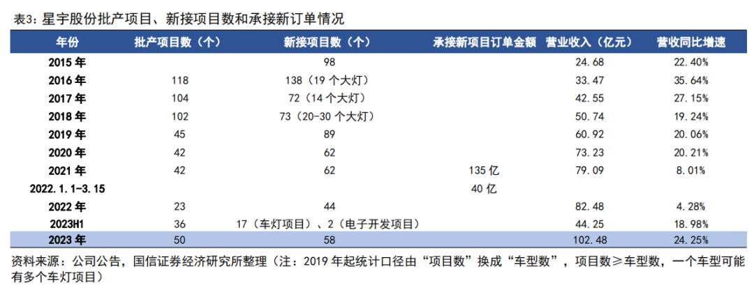 星宇股份的新订单+新产品+新产能为业绩保驾护航。客户维度,当前星宇和日系合作愉快(拿下一汽丰田“竞争力进取奖”,广汽丰田“品质优秀奖”),已进入新势力(蔚来、小鹏、理想、赛力斯、某国际知名新能源车企等)和头部自主品牌客户(吉利)的供应商体系、并获取了项目,2023 年,公司承接了58个车型的新品研发项目,实现了50个车型的项目批产,优质的新项目为公司未来发展提供了强有力的保障;产能维度,公司塞尔维亚星宇产能逐步释放,协同总部承接客户全球化项目,为公司拓展海外市场奠定良好基础,此外方式注册成立墨西哥星宇和美国星宇,进一步完善海外布局;产品维度,ADB持续渗透(渗透率从2019年的不到2%提升至2023年的12%),随着DLP投影大灯和ADB车灯等新技术陆续进入市场,星宇加强新技术开发应用,公司目前产品的新技术开发方向但不限于基于DMD技术的DLP智能前照灯、基于Micro LED技术的HD智能前照灯、基于Micro LED/Mini LED技术的像素显示化交互灯、智能数字格栅/数字保险杠的创新研发、车灯控制器 HCM/RCM/LCU 的开发、汽车电子相关产品技术研发。2023年2月15日,星宇股份与地平线在常州签署战略合作协议,共同推进“行泊一体解决方案”的量产落地,星宇股份基于地平线征程?3车规级芯片研发的“行泊一体”解决方案已获得国内某头部车企正式定点。展望2024年,公司有望实现车型订单+海外工厂+ADB、DLP及“行泊一体”解决方案等新产品释放的带来的业绩共振。