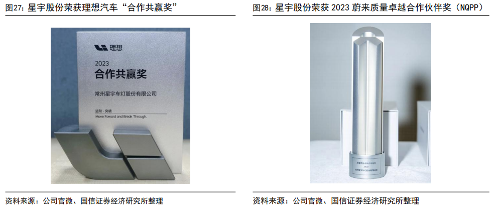 2023年10月17日,2023年蔚来合作伙伴日在合肥召开,星宇股份荣获2023蔚来质量卓越合作伙伴奖(NQPP)。蔚来质量卓越合作伙伴(NQPP)是首个新能源汽车行业对合作伙伴的全方位质量评估奖项,也是蔚来对合作伙伴产品质量和制作工艺的最高认可,是蔚来颁发给合作伙伴的最重量级的奖项。荣誉的取得不仅是对星宇不懈追求卓越质量的高度认可,也是众多客户对星宇产品和服务认可的缩影。