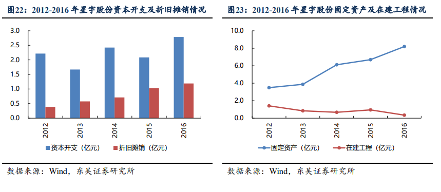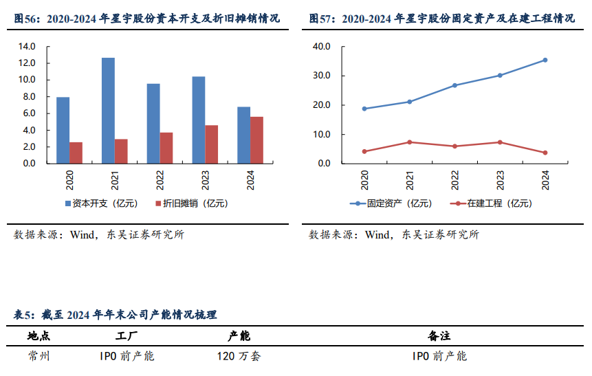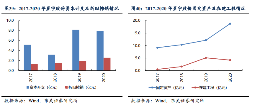 星宇在2017-2020年资本开支力度明显加大。相比于2012-2016年2亿元上下的年资本开支金额,公司2017-2020年资本开支金额增长至6-8亿元的规模,其中2019-2020年连续两年资本开支金额在8亿元左右。