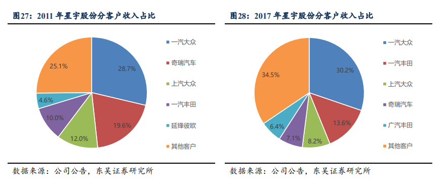 绑定头部合资品牌车企,客户结构不断优化:公司一方面深化和一汽大众和一汽丰田的合作深度,获取更多高附加值项目;一方面持续开拓了广汽丰田、东风日产、德国宝马、长安福特、东风本田等新客户。