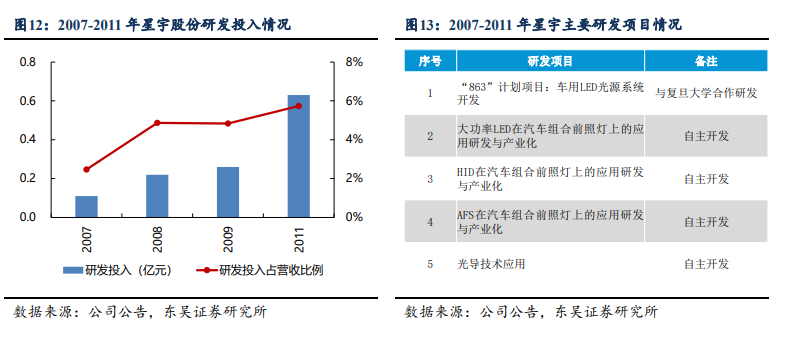 公司持续的技术研发为后续新项目、新产品的开发和获取打下了坚实的基础:早在2010年及之前,公司就针对大功率LED前照灯/HID前照灯/AFS等核心技术进行了重点研发。