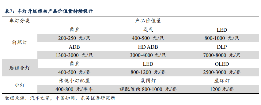 从价值量上看,随着车灯产品的升级,车灯产品的价值量也在不断提升。