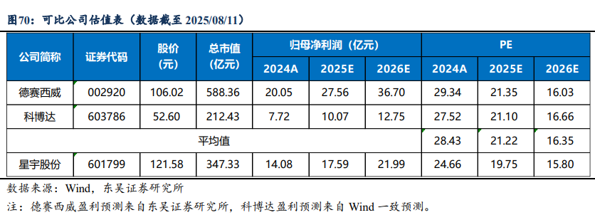 我们基本维持公司2025-2027年归母净利润分别为17.59亿元、21.99亿元、26.98亿元的预测,对应的EPS分别为6.16元、7.70元、9.44元,2025-2027年市盈率分别为19.75倍、15.80倍、12.88倍。我们选取同属于汽车电子相关的德赛西威和科博达为可比公司,可比公司2025年平均PE为21.22倍。公司作为自主车灯龙头企业,深度绑定下游头部优质客户,充分享受车灯行业智能化升级红利,市占率水平持续提升。因此,维持公司“买入”评级。